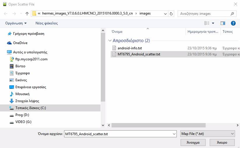 5. Πηγαίνουμε στον φάκελο που αποσυμπιέσαμε την FASTBOOT Rom και συγκεκριμένα στον images και επιλέγουμε το αρχείο που περιέχει την ονομασία scatter.txt