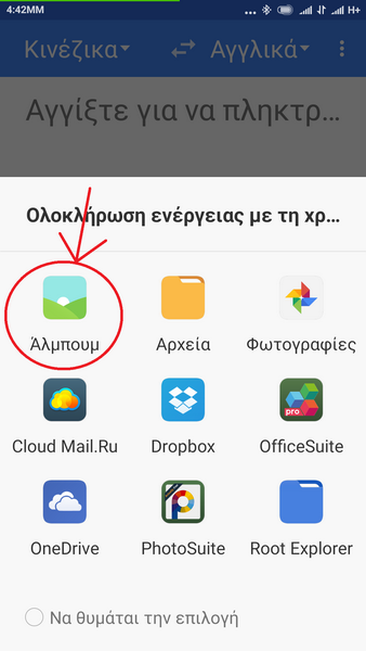 Διαλέγουμε με ποια εφαρμογή θα εντοπίσουμε την εικόνα με την ξένη γλώσσα