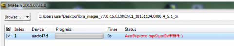 με χρηση φυσικα των για τη συσκευλη μου αντιστοιχων ρομ. Ωστοσο με το που πατάω flash εμφανιζεται κατευθειαν ενα error και για την ακρίβεια το παρακάτω: (ακαθόριστο σφάλμα(0xfffffff: ).... Καμια ιδεα για το τι μποει να φταίει ???