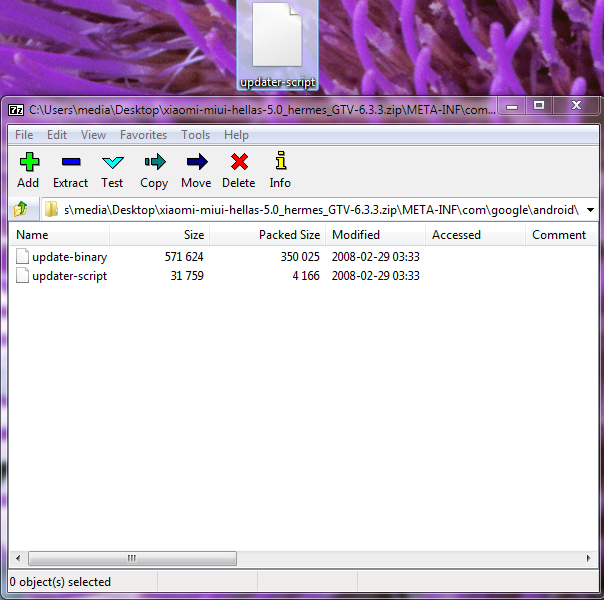 3. Μπαίνουμε στο φάκελο , META-INF/com/google/android/ , παίρνουμε το αρχείο updater.script και το βάζουμε στο desktop με drag and drop.