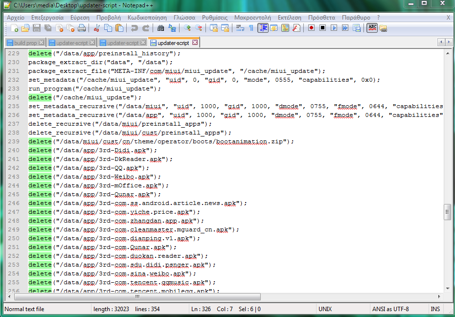 Για τα , file_contexts , scatter.txt και type.txt δεν υπαρχει κάτι στο updater.script κι έτσι απλά τα διαγραφουμε.