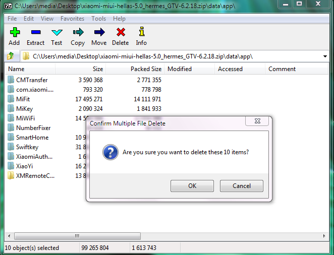 Ξεκινάμε λοιπόν για να σβησουμε τις γραμμές που είχαν σχέση με τα αρχεία και φακέλους που διαγραψαμε από το ζιπ του Ρομ.