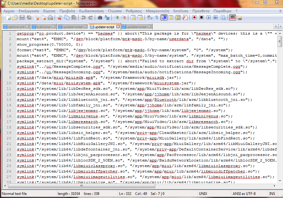Για τα , file_contexts , scatter.txt και type.txt δεν υπαρχει κάτι στο updater.script κι έτσι απλά τα διαγραφουμε.