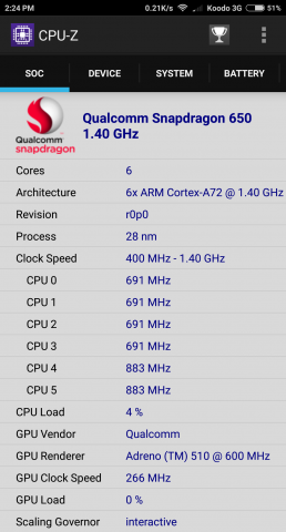 Όχι λέει ότι έχει 6 πυρήνες cortex A72 στα 1.4 το οποίο είναι λάθος και ότι το Clock speed είναι από 400_1400 το οποίο επίσης είναι λάθος. Εκτός αν εγώ το καταλαβαίνω εσφαλμενα