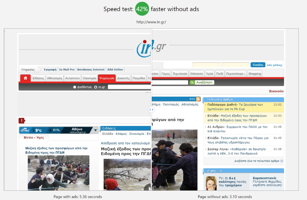 Έχει και ένα ωράιο feature που σου δείχνει πόσο πιο αργά φορτώνεται η σελίδα με τις διαφημίσεις.
