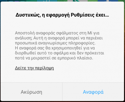 Καλησπερα παιδες εκανα αναβαθμιση μολις απο xiaomi-miui-hellas-5.1_kenzo_Stable-V8.0.1.0.zip στην xiaomi-miui-hellas-6.0_kenzo_XTRVbeta1_Stable_V8.2.1.0.zip και μου βγαζει σφαλμα οταν παταω να μπω στις ρυθμισεις. Εχει κανεις καμια ιδεα?