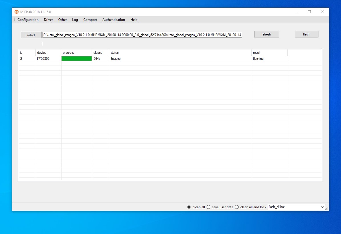 τώρα έχει ανοίξει το κινητό και το σετάρω ενώ στο miflash ακόμα μετράει