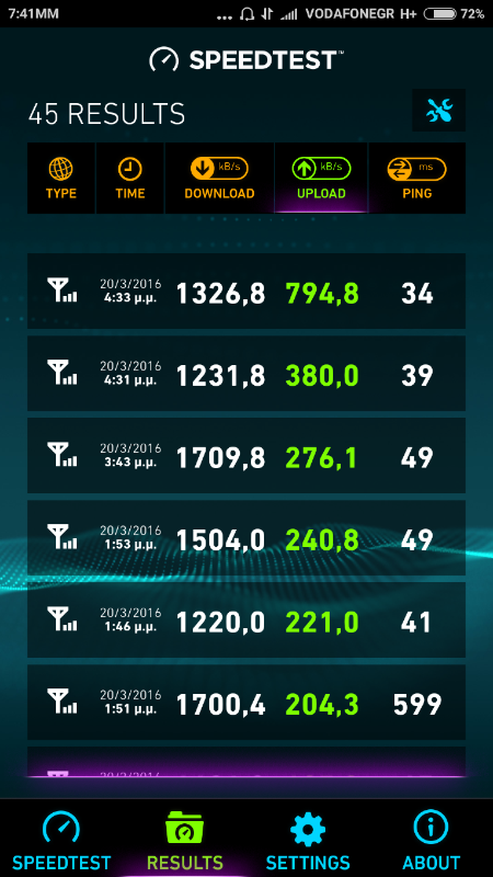 Βλέποντας μέτρηση για την ταχύτητα του @GR_Macedon στην θεσσαλονίκη αποφάσισα να ανοίξω τα δεδομένα (εαν και έχω 1,5GB το χρησιμοποιώ σπάνια ,συνήθως δουλεύω wifi) και να τρέξω το speedtest.