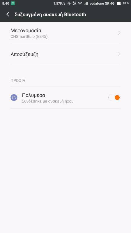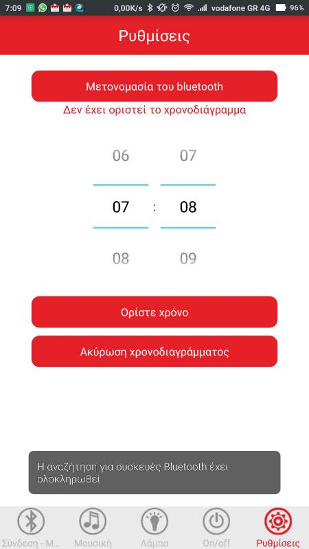 Για να αποκτήσουμε τον πλήρη έλεγχο της λάμπας, θα χρειαστεί να εγκαταστήσουμε μία εφαρμογή. Για να την βρείτε, θα χρειαστεί να βρείτε τον QR code που υπάρχει στην συσκευασία της λάμπας. Αφού τον σκανάρετε, θα κατευθυνθείτε σε μία σελίδα απ' όπου θα μπορείτε να κατεβάσετε την εφαρμογή για το κινητό σας. Υποστηρίζετε και Android και IOS. Εγώ φυσικά κατέβασα την android έκδοση και εγκαταστάθηκε στο Xiaomi Note Pro που έχω. Η εφαρμογή είναι πολύ απλή και εύκολη στην λειτουργία. Φυσικά δεν είχε ελληνικά...αλλά αφού την κατέβασα εγώ....ήταν αδύνατο να μην αποκτούσε! Η εφαρμογή έχει 5 σελίδες. Στην πρώτη φαίνεται η λάμπα μας συνδεδεμένη, στην δεύτερη την μουσική λίστα με αρχεία του κινητού μας που θέλουμε να ακούσουμε από το ηχείο του κινητού, στην τρίτη υπάρχει μία επιλογή για On/Off της λάμπας, στην 4η, επιλέγουμε χειροκίνητα τι χρώμα θα έχει η λάμπα ή αφήνουμε την εφαρμογή και αλλάζει χρώματα συνέχεια και στην τελευταία υπάρχει η δυνατότητα να ρυθμίσουμε με χρονοδιάγραμμα πότε θα ανάβει και πότε θα κλείνει.
