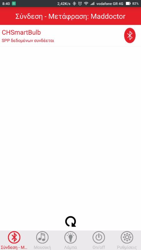 Για να αποκτήσουμε τον πλήρη έλεγχο της λάμπας, θα χρειαστεί να εγκαταστήσουμε μία εφαρμογή. Για να την βρείτε, θα χρειαστεί να βρείτε τον QR code που υπάρχει στην συσκευασία της λάμπας. Αφού τον σκανάρετε, θα κατευθυνθείτε σε μία σελίδα απ' όπου θα μπορείτε να κατεβάσετε την εφαρμογή για το κινητό σας. Υποστηρίζετε και Android και IOS. Εγώ φυσικά κατέβασα την android έκδοση και εγκαταστάθηκε στο Xiaomi Note Pro που έχω. Η εφαρμογή είναι πολύ απλή και εύκολη στην λειτουργία. Φυσικά δεν είχε ελληνικά...αλλά αφού την κατέβασα εγώ....ήταν αδύνατο να μην αποκτούσε! Η εφαρμογή έχει 5 σελίδες. Στην πρώτη φαίνεται η λάμπα μας συνδεδεμένη, στην δεύτερη την μουσική λίστα με αρχεία του κινητού μας που θέλουμε να ακούσουμε από το ηχείο του κινητού, στην τρίτη υπάρχει μία επιλογή για On/Off της λάμπας, στην 4η, επιλέγουμε χειροκίνητα τι χρώμα θα έχει η λάμπα ή αφήνουμε την εφαρμογή και αλλάζει χρώματα συνέχεια και στην τελευταία υπάρχει η δυνατότητα να ρυθμίσουμε με χρονοδιάγραμμα πότε θα ανάβει και πότε θα κλείνει.