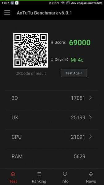 Πήρα το Mi Note Pro και το Mi4c και έτρεξα το Antutu και στις δύο συσκευές, μετρώντας την θερμοκρασία των συσκευων πριν και μετά.