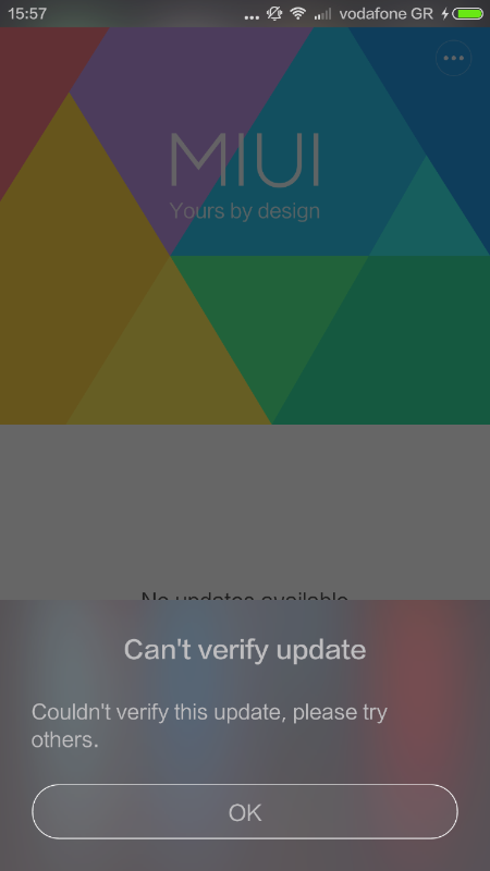 Στη συνέχεια πήγα μέσω updater να εγκαταστήσω τη Κινεζική αλλά μου βγάζει το μήνυμα που φαίνεται στο επισυναπτόμενο screenshot (can't verify update) που δεν μου επιτρέπει την εγκατάσταση.