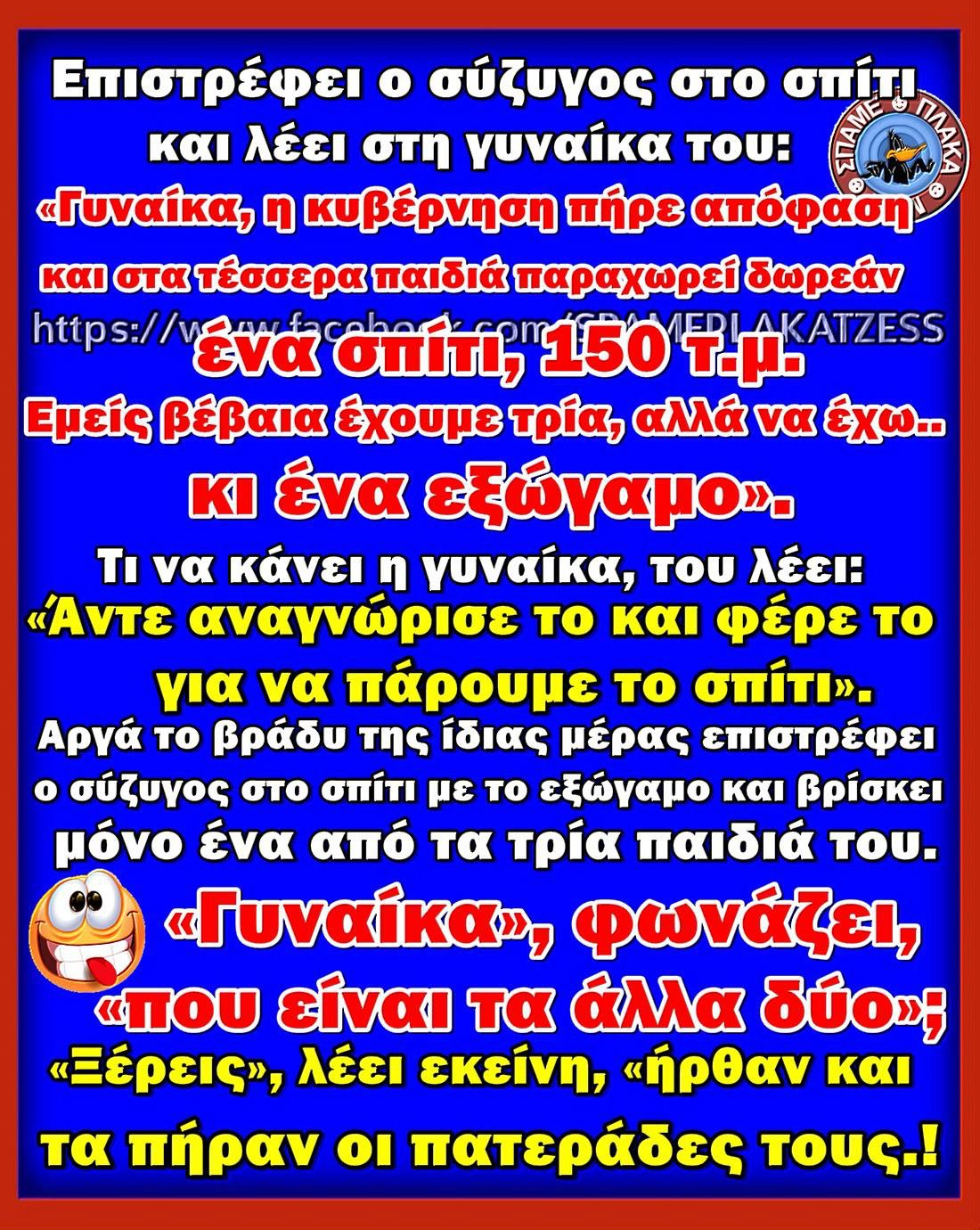 – Κύριε, έδωσες σε όλα τα έθνη από δύο αρετές αλλά στους Ελληνες έδωσες τρεις.