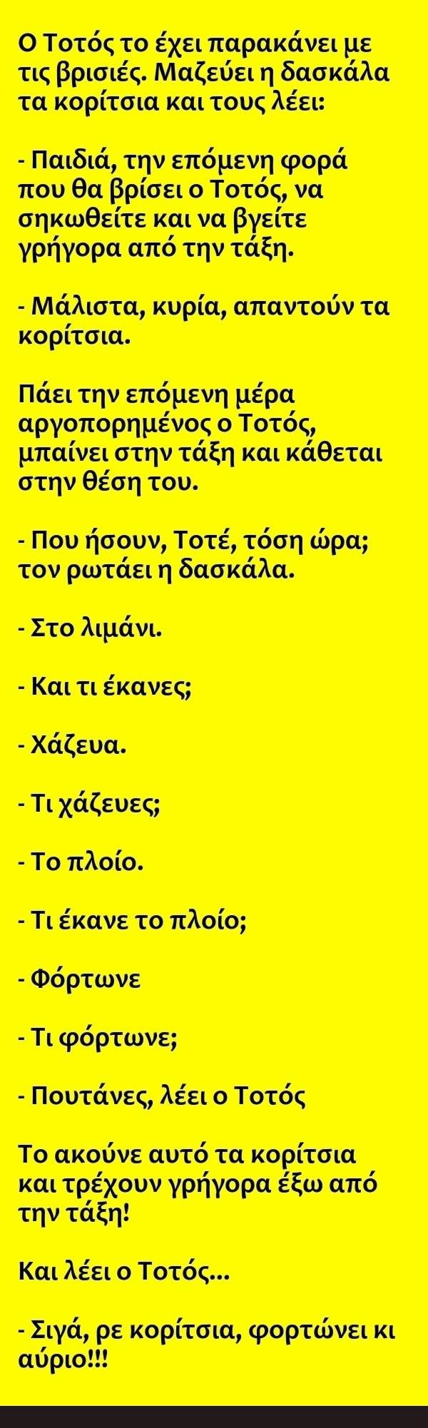 Πάει με τον πρώτο, μπαίνει στην θάλασσα και αρχίσει να κάνει πως πνίγεται. Τότε ο γαμπρός έτρεξε σφαίρα, βούτηξε και την έσωσε.