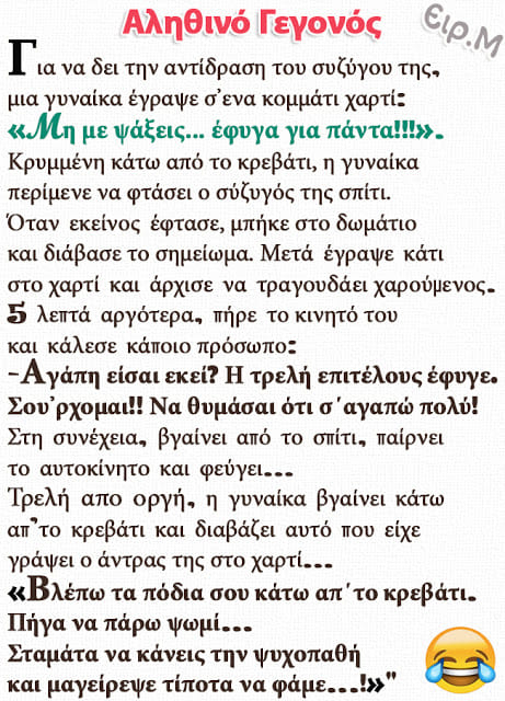 “Σε ευχαριστώ που μ’ έσωσες, η πεθερά σου”.