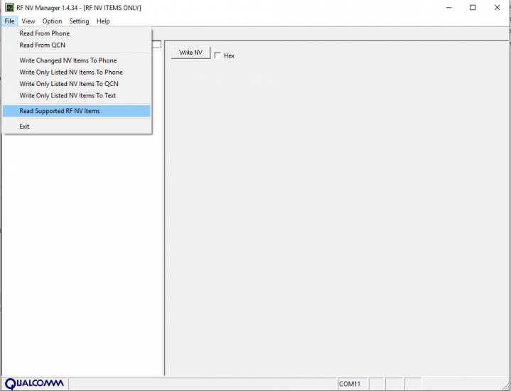 Στο RF_MV_Manager, επιλέγουμε "File" και μετά πατάμε επάνω στο "Read supported RF NV items"