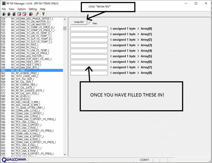 Μόλις ο IMEI αριθμός μετατραπεί σωστά σε hex, ξεκινήστε να περνάτε τους αριθμούς στα κουτάκια στον αριθμό 550 στο RV NV Manager.