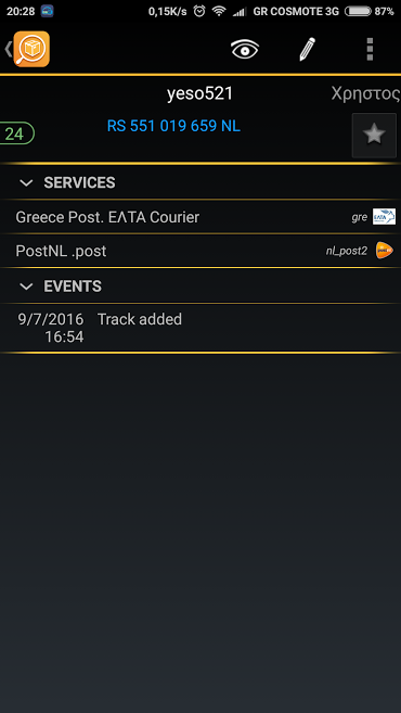 Έχω παραγγελία από 7.7.206 από τον yeso521, μου έστειλε και το tracking number αλλά δεν φαίνεται όπου και εάν έχω ψάξει