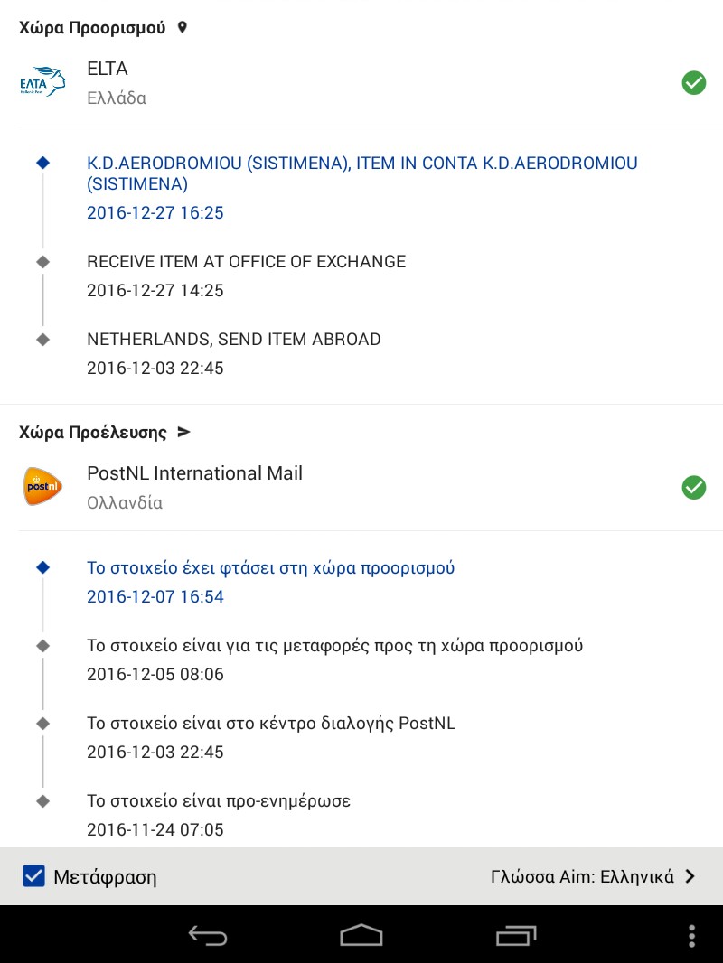 • Τα παρακατω ειναι απο αυτο εδω το post. Ειναι απο αλλο Site αλλα αξιζει να υπαρχει το Link καθως ειναι κατατοπιστικοτατο. Εγω απλα συνοψιζω δυο παραγραφους που βοηθανε να "μεταφρασουμε" τι σημαινουν αυτα που γραφουν στο tracking system των Netherlands post και των ΕΛΤΑ.