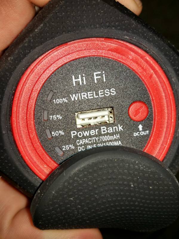 Η μπαταρία του μεγαφώνου αυτού είναι επίσης ένας από τους λόγους που το διάλεξα, αφού ενώ τα άλλα είχαν 3000 και 4000 αυτό ακουμπάει τις 7 000. Λόγο αυτής της τεράστιας μπαταρίας συναντούμε και τη usb υποδοχή, αφού το εξάρτημα μας μπορεί να κάνει και το power bank ανά πάσα στιγμή !!! πράγμα ιδανικό για καταστάσεις camping, αφού μπορεί να μας φορτίσει το κινητό αλλά και ένα επαναφορτιζόμενο φωτιστικό ή και φανάρι.