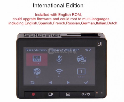 Ανάλογα με την έκδοση που θα πάρετε, θα δείτε ότι τα μενού της κάμερας και της εφαρμογής που εγκαθιστάτε στο κινητό είναι στα κινέζικα ή στα αγγλικά. Στην αγορά έχουν εμφανιστεί δύο εκδόσεις, οπότε θέλει προσοχή τι αγοράζετε. Δεν γνωρίζω εάν η εφαρμογή του κινητού περιλαμβάνεται στις εφαρμογές που μεταφράζει ο Moderator Maddoctor στο forum της Xiaomi-miui.gr. Δυστυχώς η κινέζικη έκδοση μπορεί να περιέχει μόνο κινέζικα, ενώ η διεθνής έχει μέσα Αγγλικά, Ισπανικά, Γαλλικά, Ρώσικα, Ιταλικά, Γερμανικά, Ολλανδικά. Επίσης δέχεται αναβαθμίσεις και μπορείτε να του κάνετε root. Το μενού είναι προσβάσιμο μέσω του 2,7-ιντσών, οθόνη 426 x 240 pixel, το οποίο είναι ένα λογικό μέγεθος για μια κάμερα ταμπλό, χρησιμοποιώντας τέσσερα κουμπιά στο κάτω μέρος.