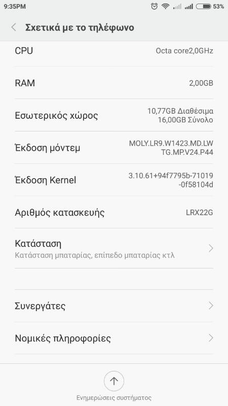 Καλημερα σε ολους, αγορασα πριν κατι μερες το Redmi note 3 με 2 γιγα ραμ. Το οποιο ειναι στα ελληνικα, παρακάτω παραθετω φωτο. Εχει ελληνικη ρομ? Και πρεπει να κανω αναβαθμισεις η' οχι?