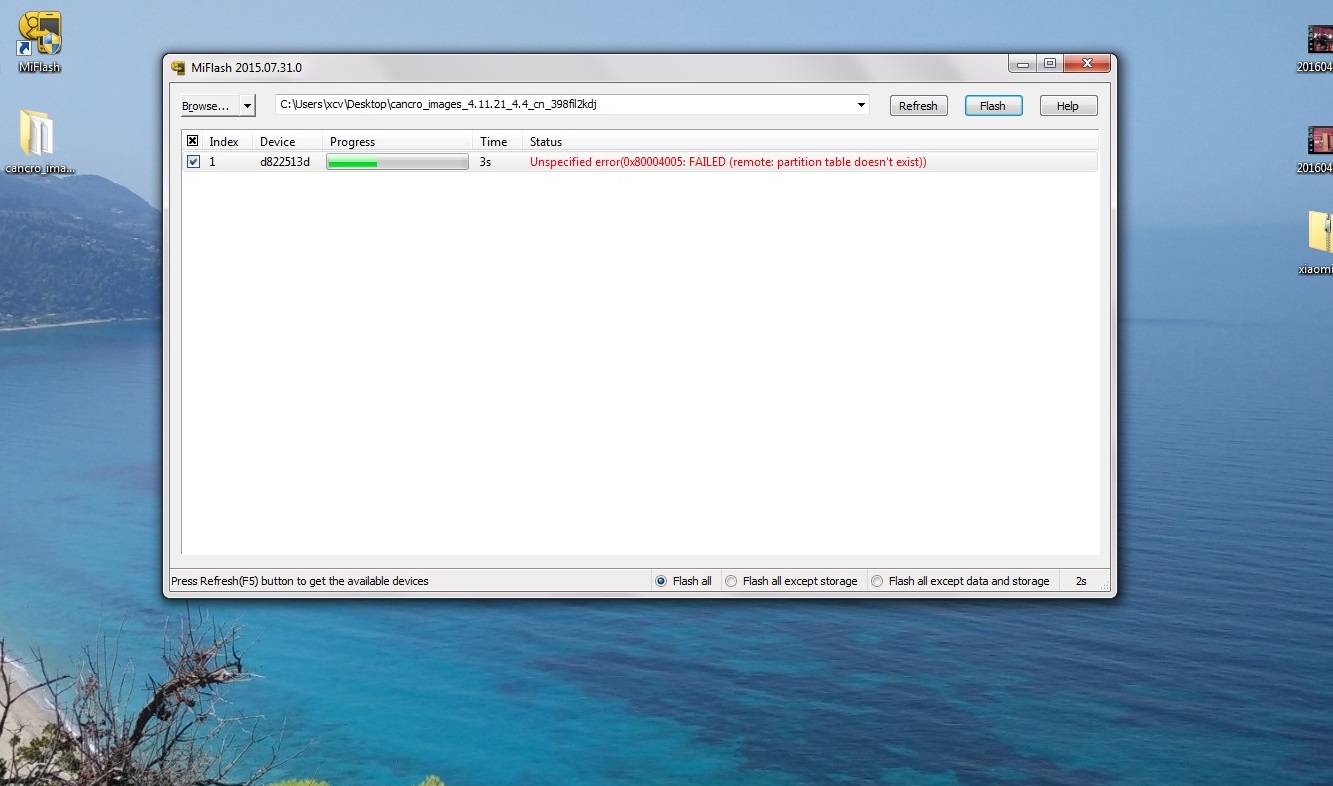 Κάτι απ όλα που εκανα πηγε στράβα. Στην προσπαθεια να κανω merge τα partiton για να συνεχισω κατέβασα και προσπαθησα ανεπιτυχώς να περασω την dev "cancro_global_images_V7.0.5.0.KXDMICI_20151016.0000.3_4.4_global_d918563f7e" για να κανει ενοποίηση και να συνεχίσω . Αποτέλεσμα , το κινητό είναι μονιμα σε fastboot mode και δεν bootαρει και στο miflash μου δίνει την παρακατω εικόνα... τι κανουμε τώρα?Ο/H ckarape έγραψε: