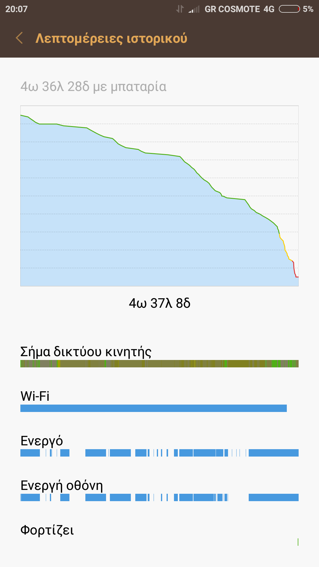 Θα ήθελα να εκφρασω εναν προβληματισμο μου. Εχω το mi4 ποτε δν ειχα θεμα με την μπαταρία κ τωρα τελευταία δε προλαβαίνω να φορτιζω. Μηπως μπορει καποιος να με φωτίσει τι μπορει να παιζει? Μιλαμε αυτη τι στιγμη μιλαω στο μεσεντερ μ ενα φιλο για πεντε δεκα λεπτα κ εχει παει απο 30% 14 μεσα σ ουτε δεκα λεπτα. Με πλοήγηση στο ίντερνετ πριν συγκεκριμένα στο καρ εφαγε 18% σε δεκαπεντε λεπτά. Τι γίνεται βρε παιδια κ πεθαινει ετσι η μπαταρία. Μηπως τα έπαιξε να παραγγείλω αλλη? Παντα εβγαζε ενα δεκαωρο κ με φουλ χρηση κ ανοιχτα δεδομένα και WiFi κ τωρα ουτε καν 5ωρες δε βγάζει. Περίμενα μήπως βγει αναβάθμιση επόμενη σε stable μπας κ δω διαφορά αλλα επειδή αργει λογικά δεν μπόρεσα να μη το αναφέρω. Εχω τημ τελευταία stable 7.3.3...
