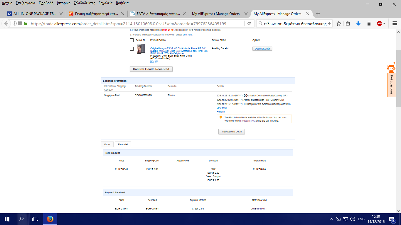 Έχεις πάρα πολλές μέρες περιθώριο, μην ανησυχείς, μετά από 45-50 μέρες ανοίγουμε dispute στο paypal!!
