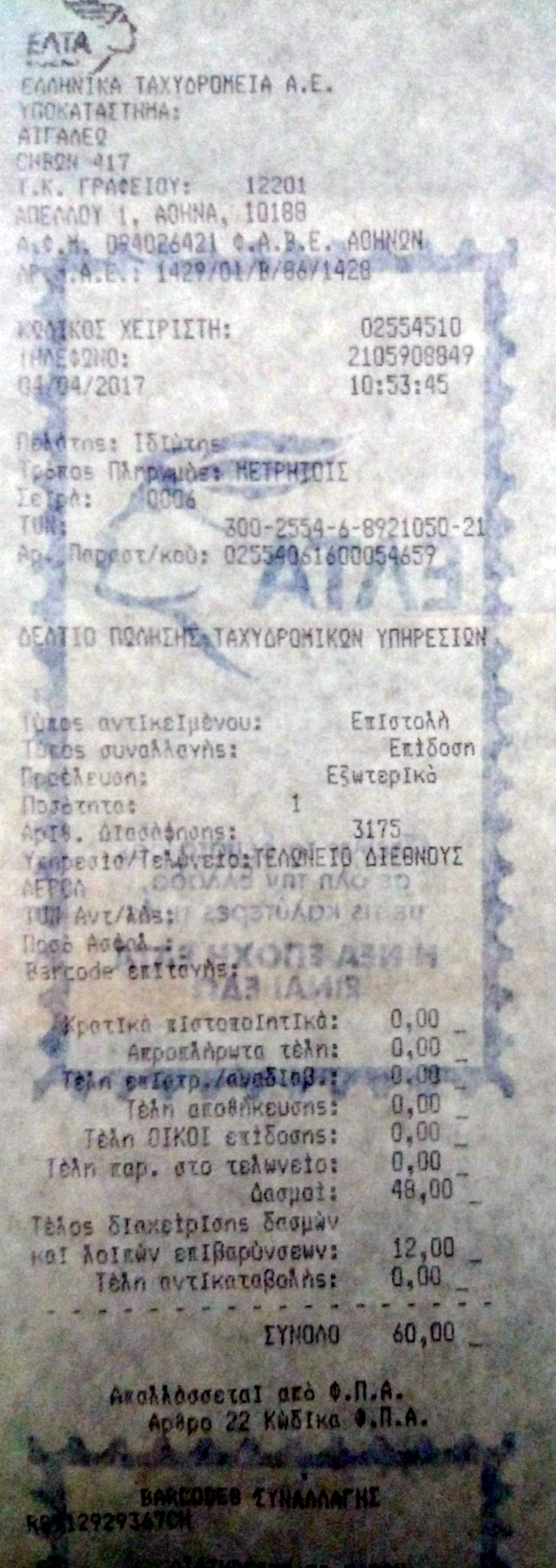 Δεν άλλαξε τίποτα βρέ ... ανέκαθεν ήταν 12€ +24% = 14,88€Ο/H zt654 έγραψε:Το 12 ευρώ παιδια των ΕΛΤΑ πήγε στα 14,88. Μου το είπε σήμερα ο γνωστός μου στο ταχυδρομείο!