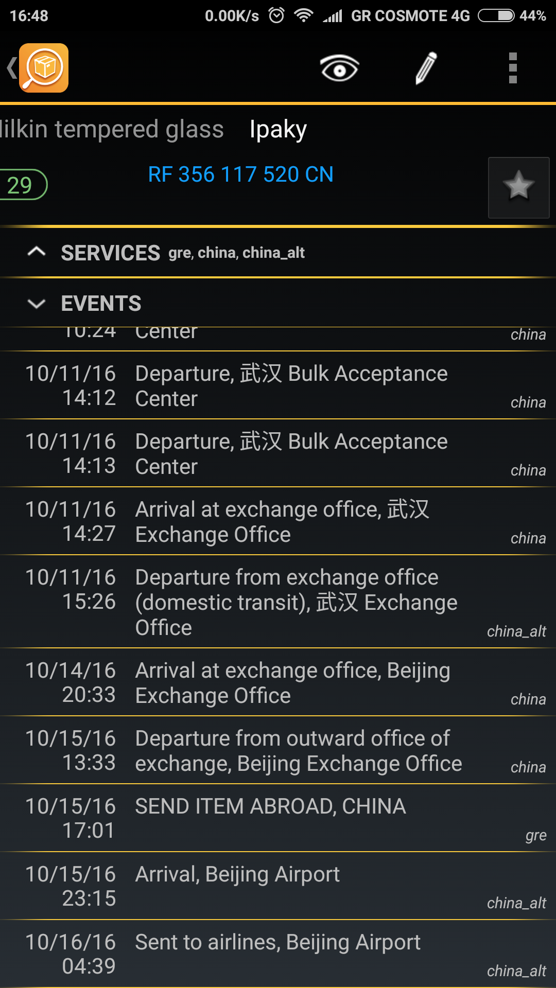 | ΑΠΟΣΤΟΛΗ ΑΝΤΙΚΕΙΜΕΝΟΥ ΣΤΟ ΕΞΩΤΕΡΙΚΟ | 18-10-2016 | 05:40 | ΟΛΛΑΝΔΙΑ |