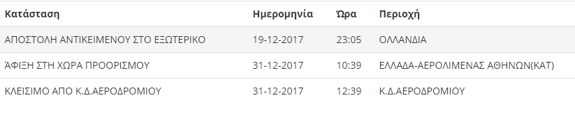 19/12/2017 09:47:00. ΑΠΟΣΤΟΛΗ ΑΝΤΙΚΕΙΜΕΝΟΥ ΣΤΟ ΕΞΩΤΕΡΙΚΟ, ΟΛΛΑΝΔΙΑ