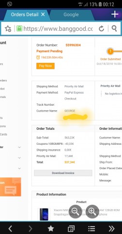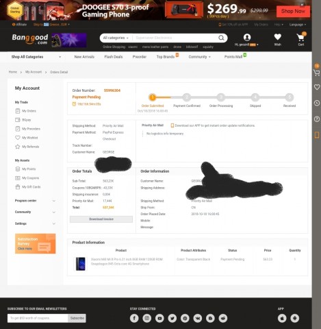 • Καλημέρα σε όλους θα ήθελα μία βοήθεια επείγον!! Πέμπτη βράδυ πήγα και έκανα μία αγορά ένα mi8 με κουπόνι από Banggood αλλά χωρίς να το ξέρω δεν έφτανε το όριο αγορών της κάρτας ετσι μου το μπλόκαρε χωρίς να πληρωθεί. Εχθές Παρασκευή έφτιαξα στο σύστημα το όριο ανάληψης Εντω μεταξύ η παραγγελία έχει μπει από Πέμπτη βράδυ στο προφίλ μου στο My order μου έχει έρθει και email με το γνωστό πινακάκι Pay now όπως βλέπετε στην πρώτη φώτο μέχρι χτες, αλλά βλέπω σήμερα στο Sait στην δεύτερη φώτο δεν με αφήνει να την πληρώσω έχουν βγάλει την επιλογη με το Pay now. Το πρόβλημά μου με την τράπεζα online θα λυθεί από Δευτέρα πρωί τι κάνω πώς μπορώ να κλειδώσω την τιμή της προσφοράς γιατί είχα βάλει και κουπόνι?? ?( ?(