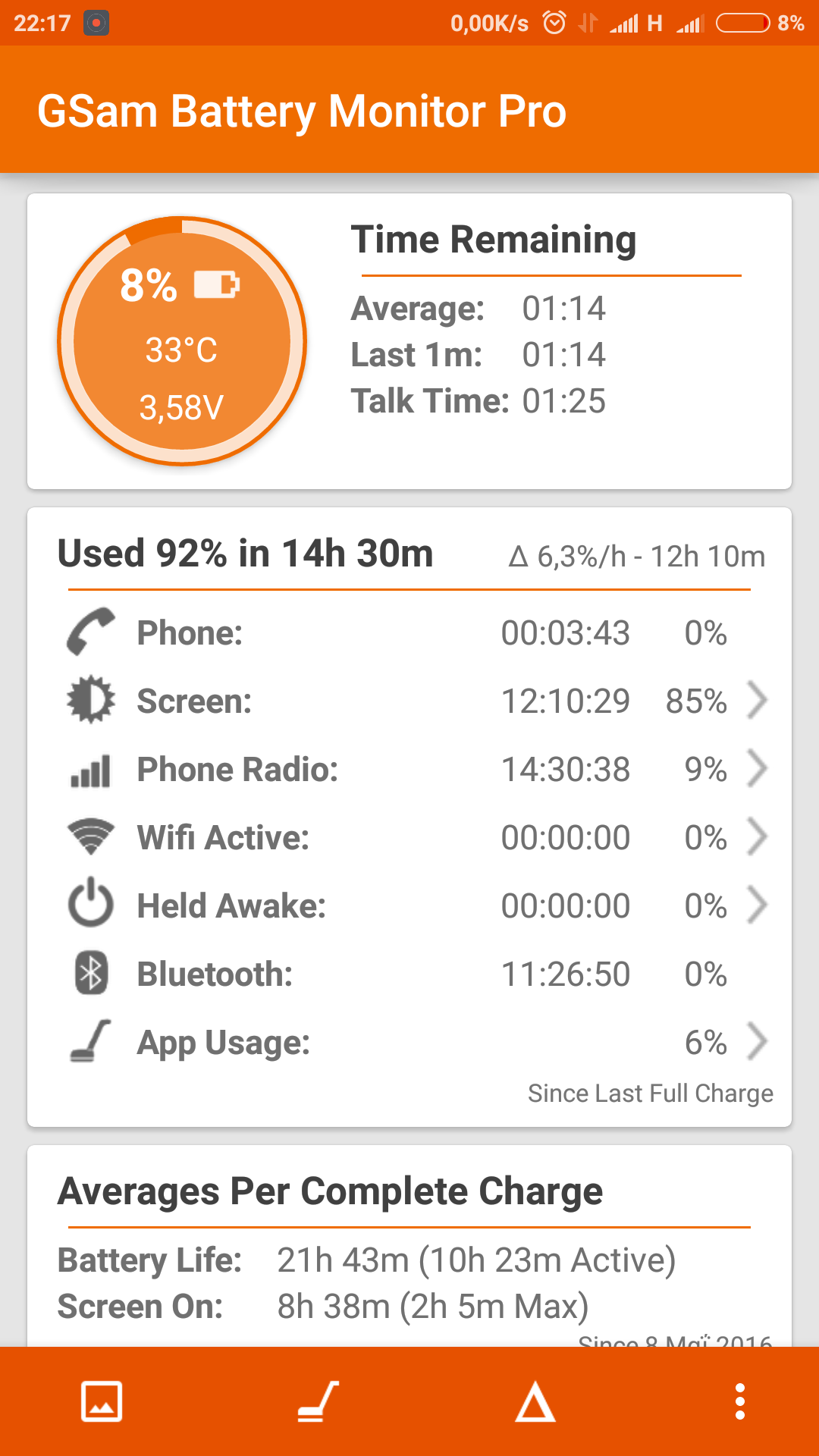Το εβγαλα απο το ρευμα στις 8,00 το πρωι και το αποτελεσμα του gsam ειναι στις 21,00 το βραδυ. Ειναι 13 ωρες. ΑΠΟΚΛΕΙΕΤΑΙ η οθονη να ειναι ανοιχτη πανω απο 4 ωρες γιατι και στην τσεπη που το βαζω παταω πρωτα το κουμπι και το κλεινω απο συνηθεια. Εκτος αν βραχυκυκλωνει. Η τσεπη του μπουφαν που το βαζω ειναι εσωτερικη και πολυ φαρδια. ΣΤο φβ ημουν 1 ωρα και 38 λεπτα ενω το συστημα android λεει 1 ωρα και 38 δευτερολεπτα. Καμμια σχεση. Δεν κανω κατι αλλο. Μιλαω και μπαινω φβΟ/H mixaliscy έγραψε:
