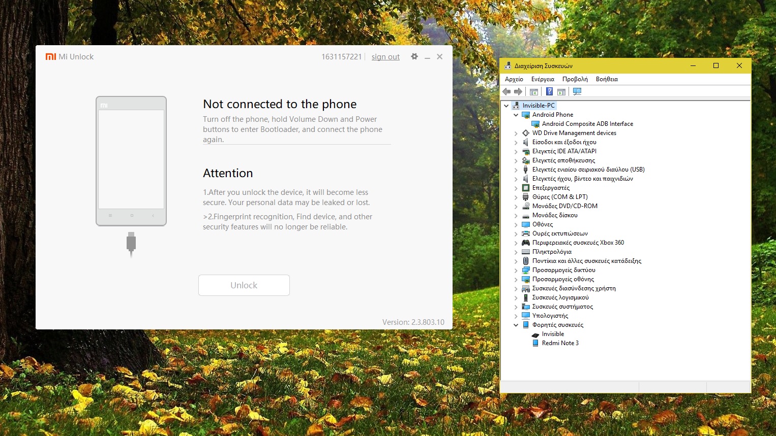 Όπως βλέπω στη φώτο το κινητό δεν είναι σε fastboot mode κλείσε το κινητό και πάτα μαζί power +volume down να μπει σε fastboot mode και μετά τρέξε το mi account