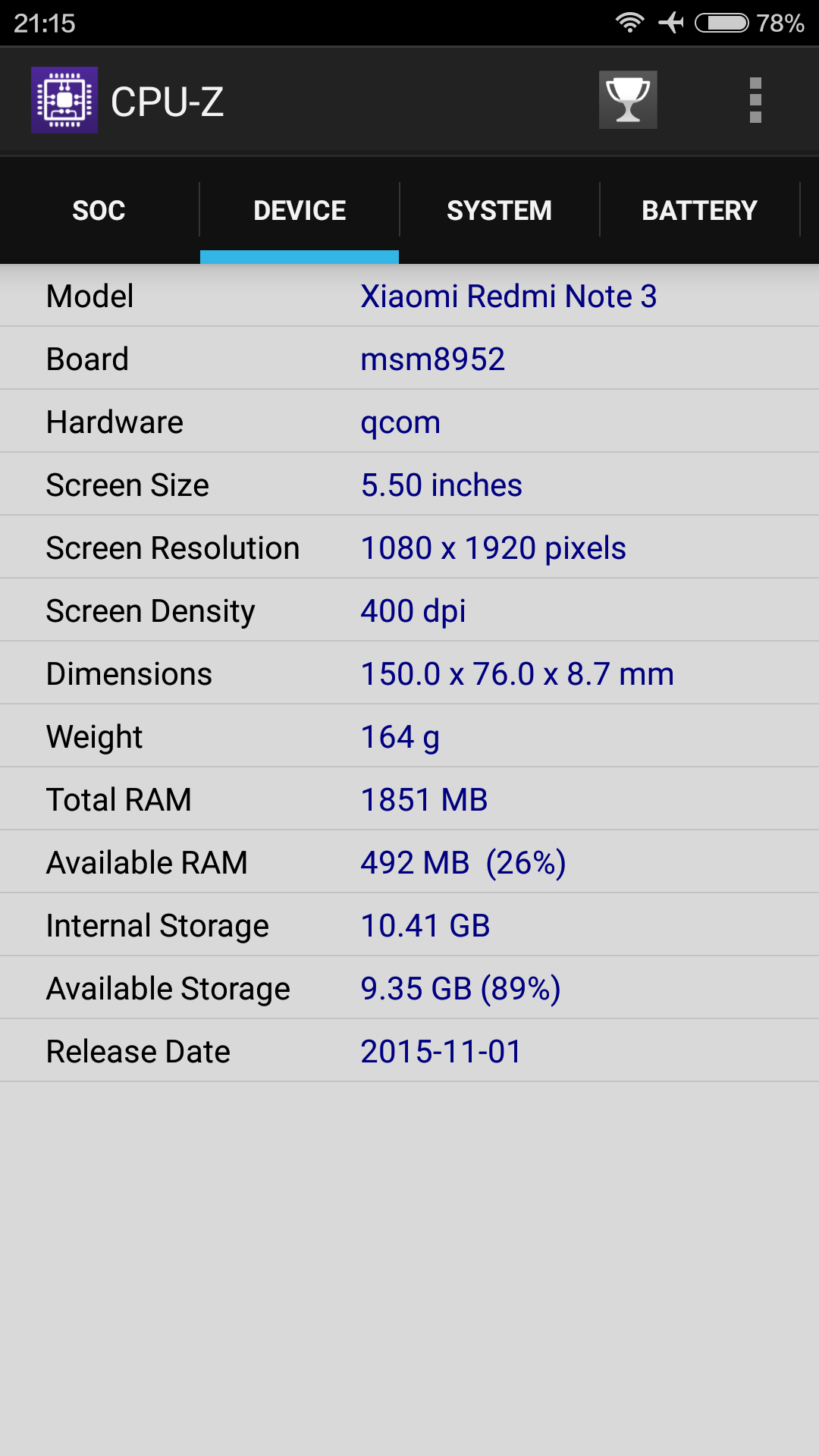 το cpuz γράφει Qualcomm Snapdragon 650 1.40GHz και 6χ ARM Cortex A72 με Adreno 510@600 MHz αλλά board= msm8952.