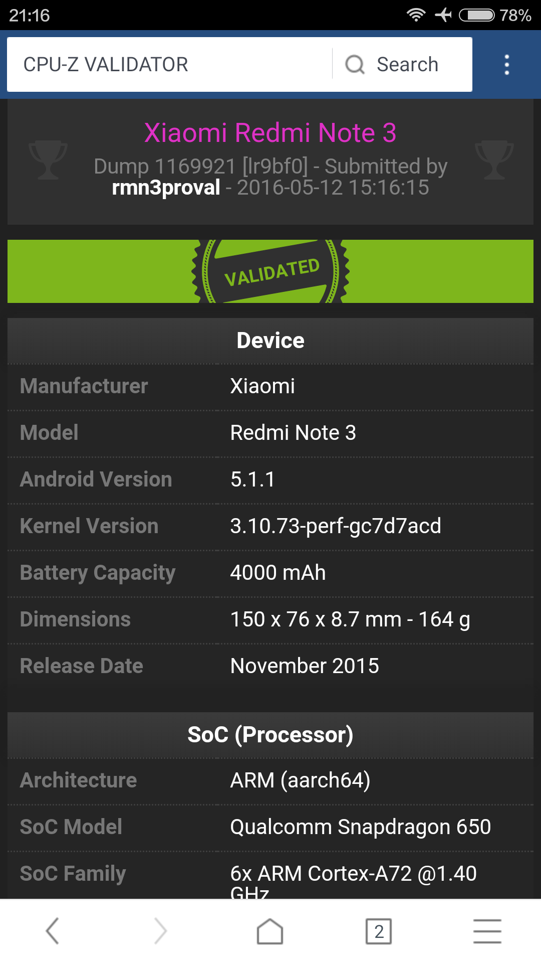 το cpuz γράφει Qualcomm Snapdragon 650 1.40GHz και 6χ ARM Cortex A72 με Adreno 510@600 MHz αλλά board= msm8952.