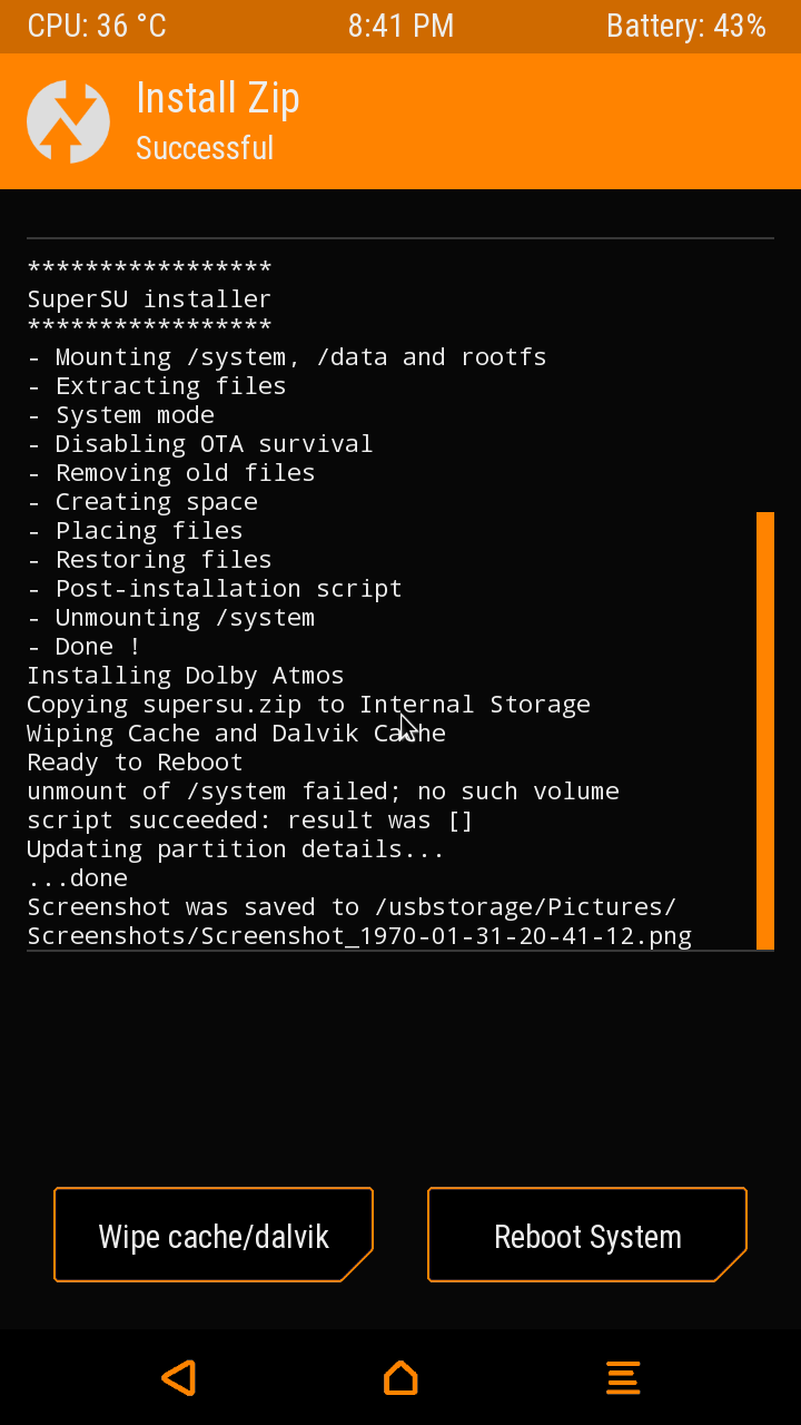 Οπότε το πρόβλημα είναι το TWRP Recovery 3.0.0-r2 που δεν ολοκληρώνει σωστά το Script Εγκατάστασης.