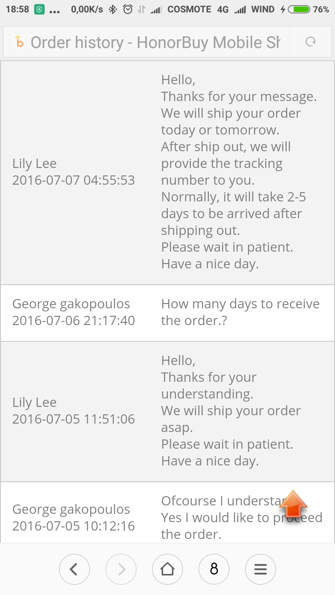 Μεγαλο σπάσιμο, κάνει τό honorbuy. Είναι ή πρώτη φορά, που αγοράζω από αυτό, και ομολογουμένως, με αγχωσαν, εκνευρισαν. Τα παιδιά γράφουν , παραλαβή σε 2 μέρες, έπρεπε να το είχα τό κινητό. Δεν ξέρω τι να πώ.