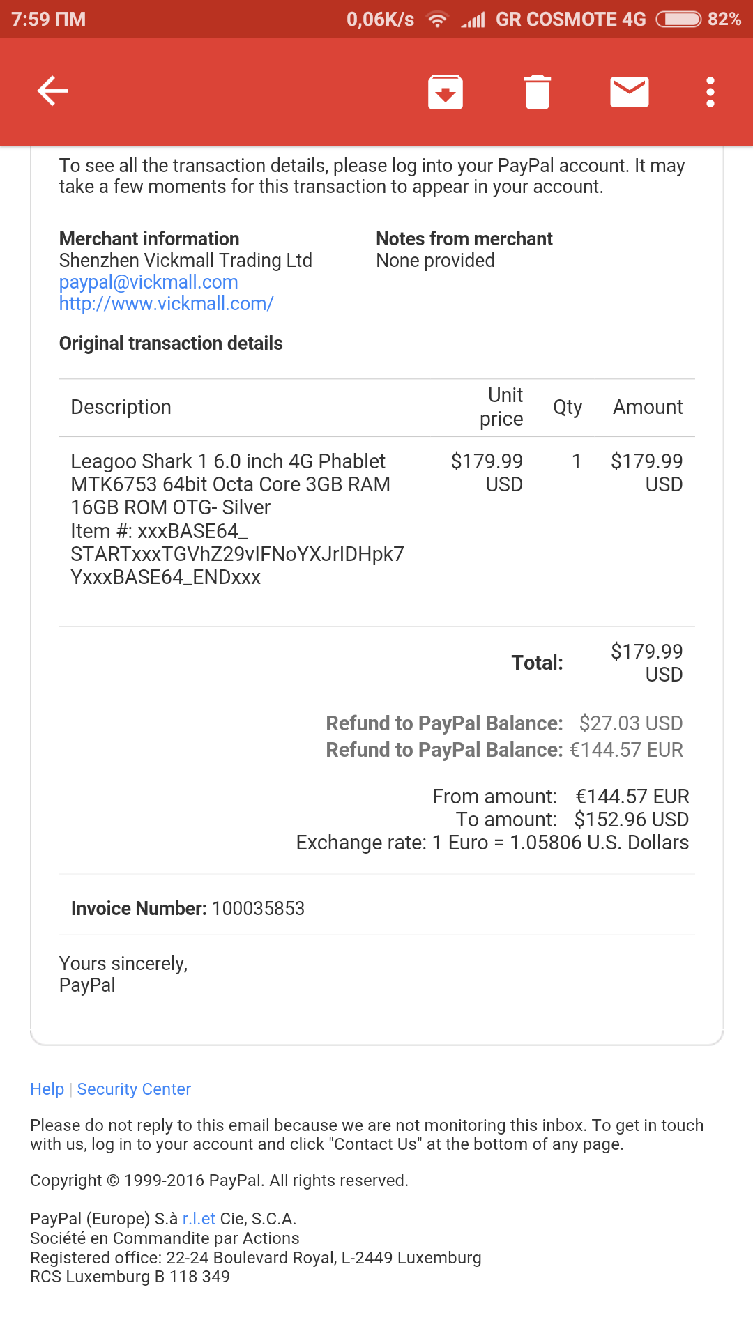 όταν ειχα φορτωσει το balance, ειχα βαλει, ευρω και λιγα δολλαρια. Επισης από τον λογαριασμο μου στο paypal επέστρεψαν 179,99 δολλαρια, το ακριβες ποσο δηλ. Θα αλλαξω θεμα,, χθες εκανα buckup sto mi max, me twrp. η γνωμη μου, είναι ότι πρεπει να γινεται, πχ σε ένα ΝΟΤΕ 4, το εκανα restore.