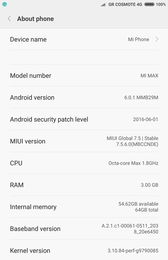Για την ρομ ,ανέβασε μία φώτο με αυτά που δείχνει στο σχετικά με το τηλέφωνο να δούμε ποια έχεις