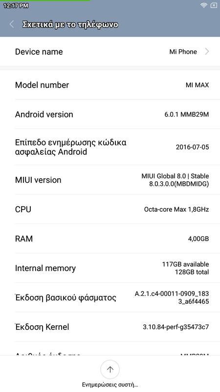 Γεια σας παιδια, εχω το Mi Max 3/64 . Φοραει την MIUI Global Stable 8.0.3.0.0(MBDMIDG). Ειναι Unofficial η ROM? Παντως παιζει καλα, βεβαια στο Antutu θα περιμενα καλυτερα νουμερα απο τα 79,000 που βγαζει αυτη την στιγμη ( βεβαια μονο στα νουμερα), καθως το κινητο παει ρολοι, κινεζια μηδεν.