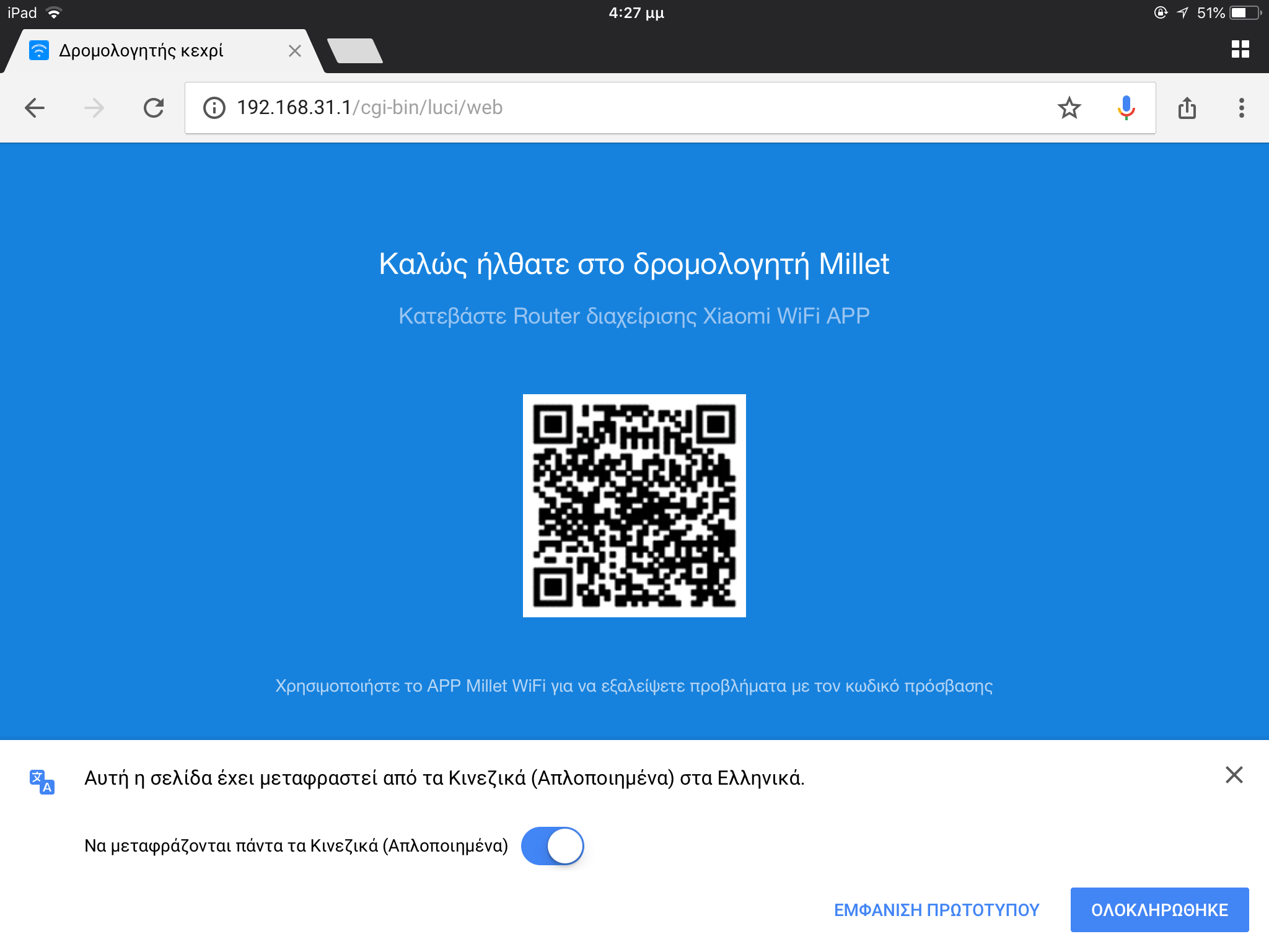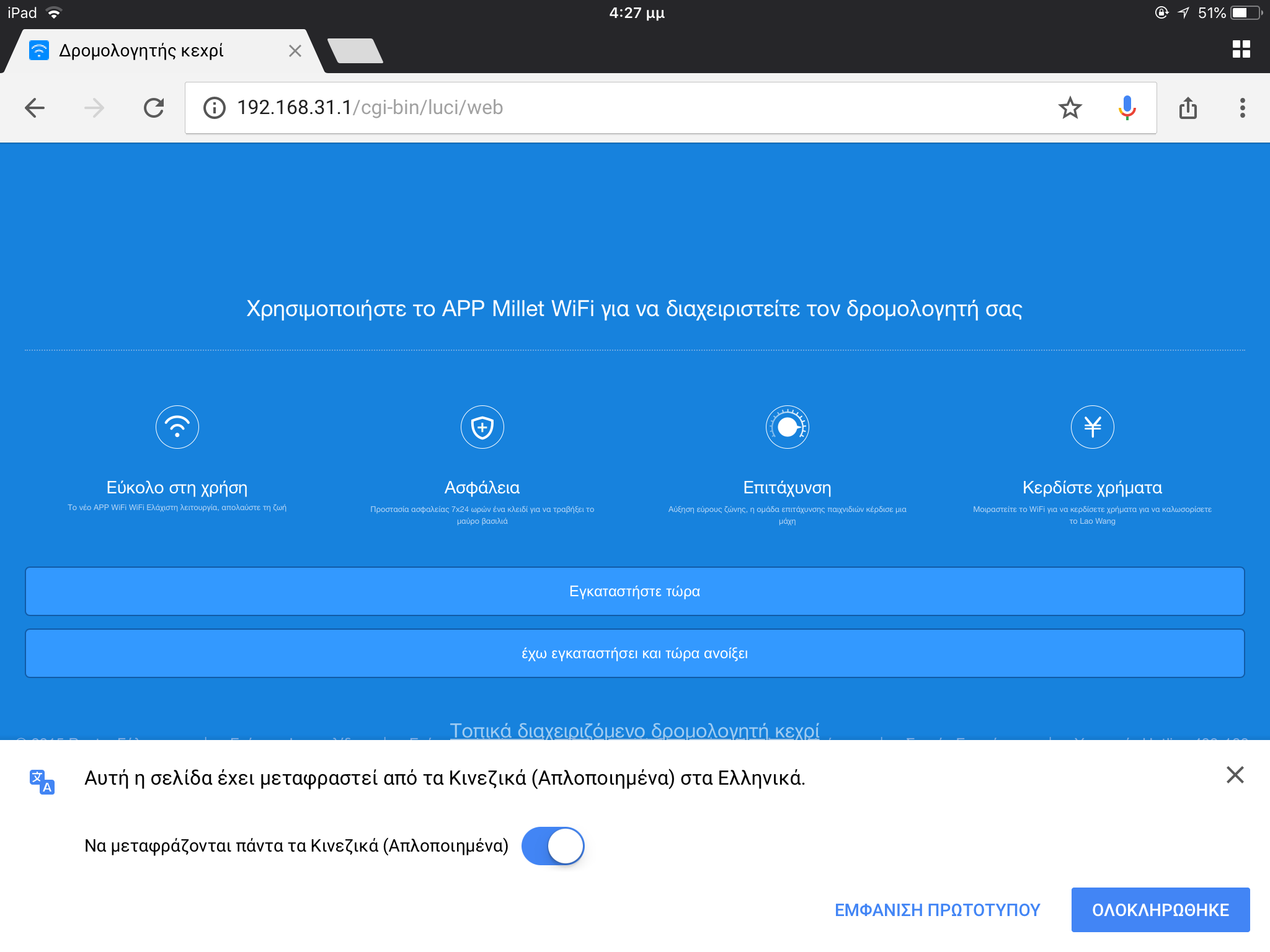 Με βγαζει να ανοιξω η να εγκαταστησω την εφαρμογη για να διαχειριστω το ρουτερ