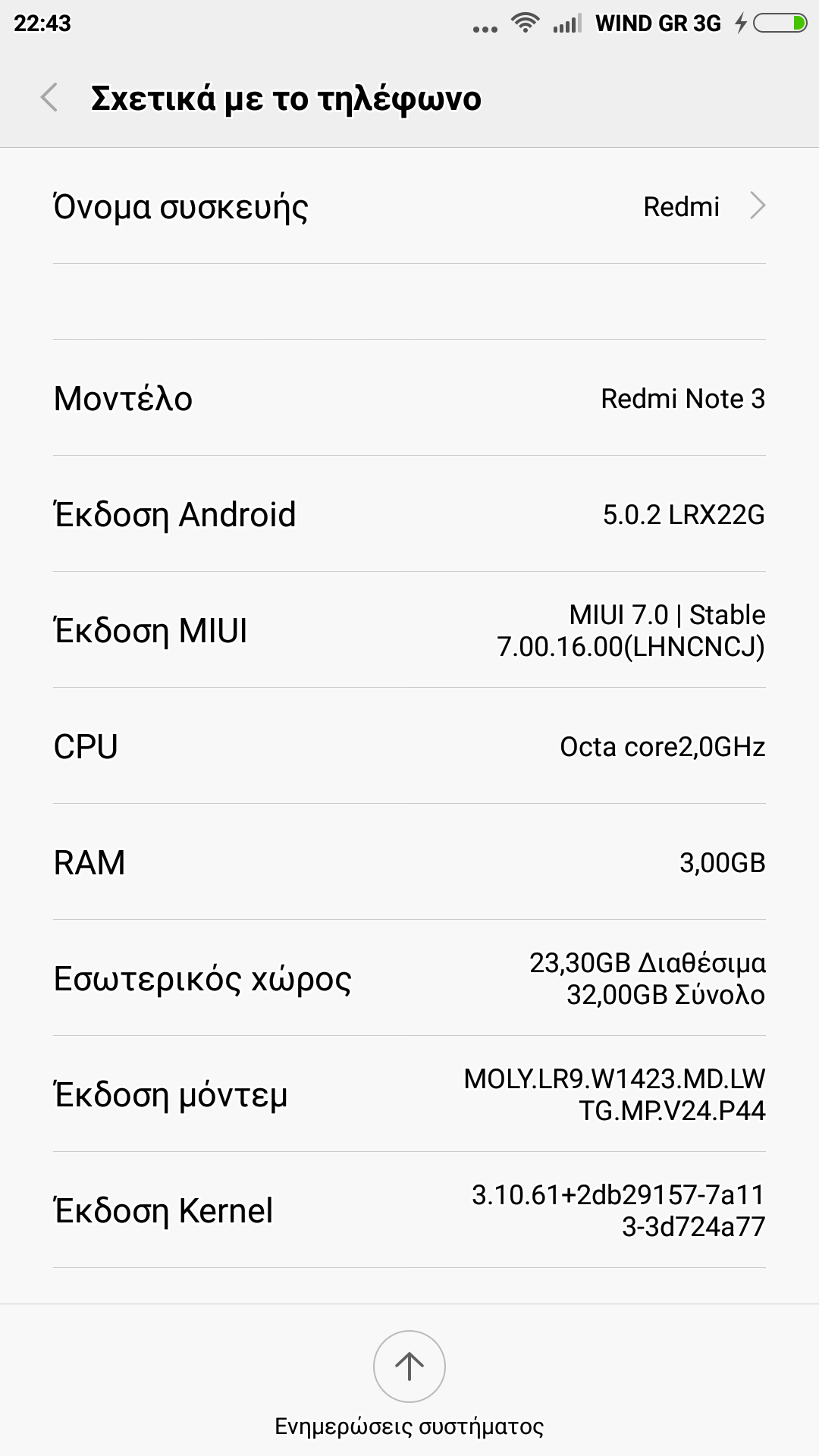 2. Printscreen του about του κινητού να δούμε τι ρομ έχειςΠαθολογικός-Ογκολογικός-Νεφρολογικός-Ενδοκρινολογικός Ιατρικός Φάκελος(EMR)