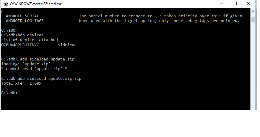 Επιτέλους έχω την ελληνική stable rom,αντιμετώπισα κάποια προβλήματα αλλά τα κατάφερα,δεν μου έβρισκε το zip και έτσι ακολούθησα τον οδηγό με adb sideload έβαλα το zip στον φάκελο adb και τον μετονόμασα σε update zip μπήκα με την εντολή adb sideload update zip zip και όντως το cmd σταμάτησε στο 49%,το κινητό όμως συνέχισε την διαδικασία και μου εμφάνισε την επιλογή reboot,το επέλεξα και περίμενα λιγάκι και όλα καλά,το μόνο που δεν εμφάνισε είναι το superuser που θα έπρεπε να πατήσω do not install,το cmd σταμάτησε εμφανίζοντας την εντολή total xfer:1.00x όπως φαίνεται στην φωτογραφία.