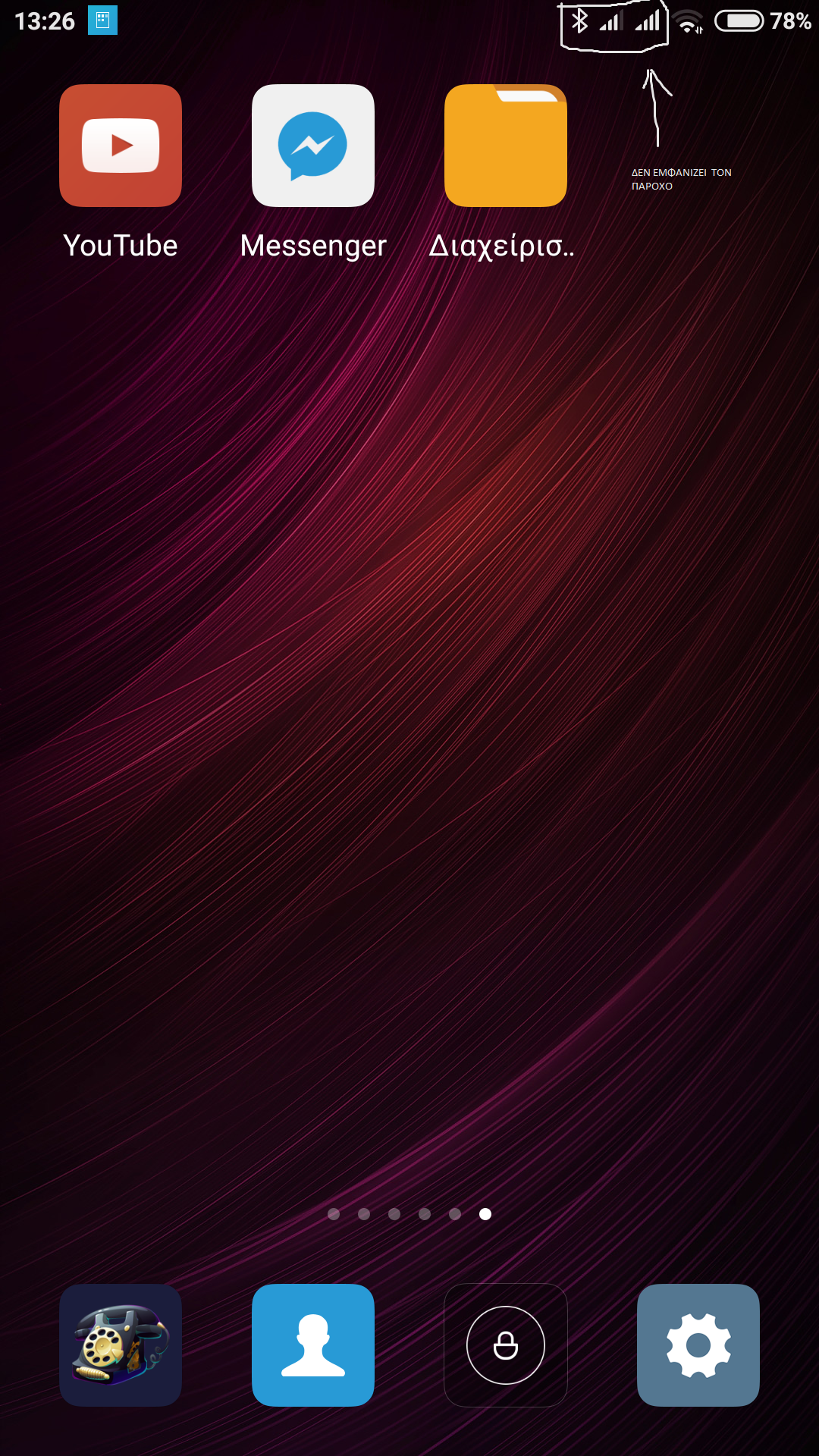Η Xiaomi έχει αφαιρέσει τη δυνατότητα να εμφανίζεται το όνομα του παρόχου στην statusbar στην κανονική λειτουργία, προκειμένου να εξοικονομείται περισσότερος χώρος για τα εικονίδια αριστερά. Το όνομα του παρόχου πλέον εμφανίζεται μόνο στην lockscreen και εκεί μόνο αν ο χρήστης έχει ενεργοποιήσει την εν λόγω επιλογή από το μενού επιλογών "Ειδοποιήσεις και γραμμή κατάστασης".Ο/H pontios.gk έγραψε: