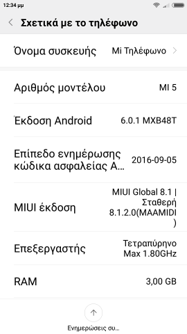 Πήγαινε στην εφαρμογή Ενημέρωση και κάνε έλεγχο ενημερώσεις για να σε δώσει την 8.2.2.0 είναι η τελευταία global stable rom. Αν δεν στην βγάλει ακολούθησε την παρακάτω διαδρομή Ρυθμίσεις - Πρόσθετες Ρυθμίσεις - Περιοχή βάλε Ινδία και ξανά δοκίμασε αν και τώρα δεν στην εμφανίσει κατέβασε την από εδώ MIUI ROM for Xiaomi Mi 5 - MIUI Downloads - Xiaomi MIUI Official Forum μέσα από τον browser της συσκευής όταν ολοκληρωθεί η λήψη πήγαινε στην εφαρμογή Ενημέρωση (να έχεις ανοιχτό το wifi για να γίνει η αποκρυπτογράφηση) - πάνω δεξιά στις τρεις τελείες - επιλογή πακέτου ενημέρωσης - φάκελο download τσεκάρεις την rom και θα ξεκινήσει η αναβάθμιση.