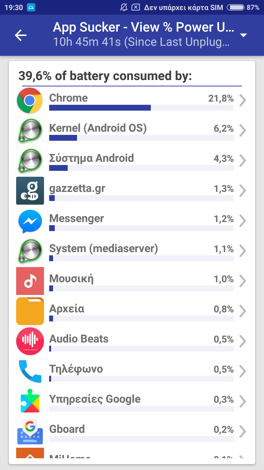 Normal είναι τα στατιστικά. Το μεγαλύτερο μέρος της μπαταρίας στο έφαγε ο Chrome, γεγονός λογικό, οι περισσότεροι browsers συμπεριφέρονται παρόμοια.