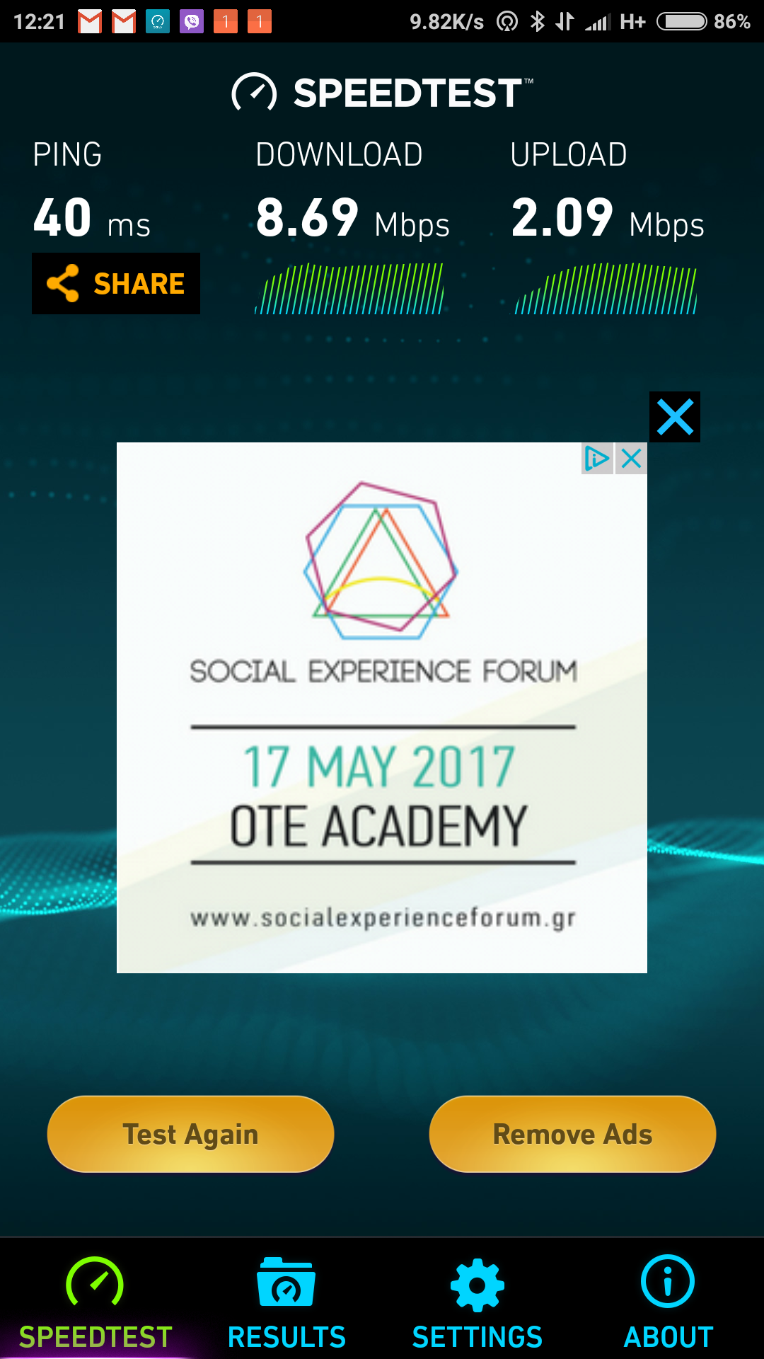 Cosmote οπου το κατέβασα το τηλέφωνο επίτηδες στο 3G: H+ 6Mbits