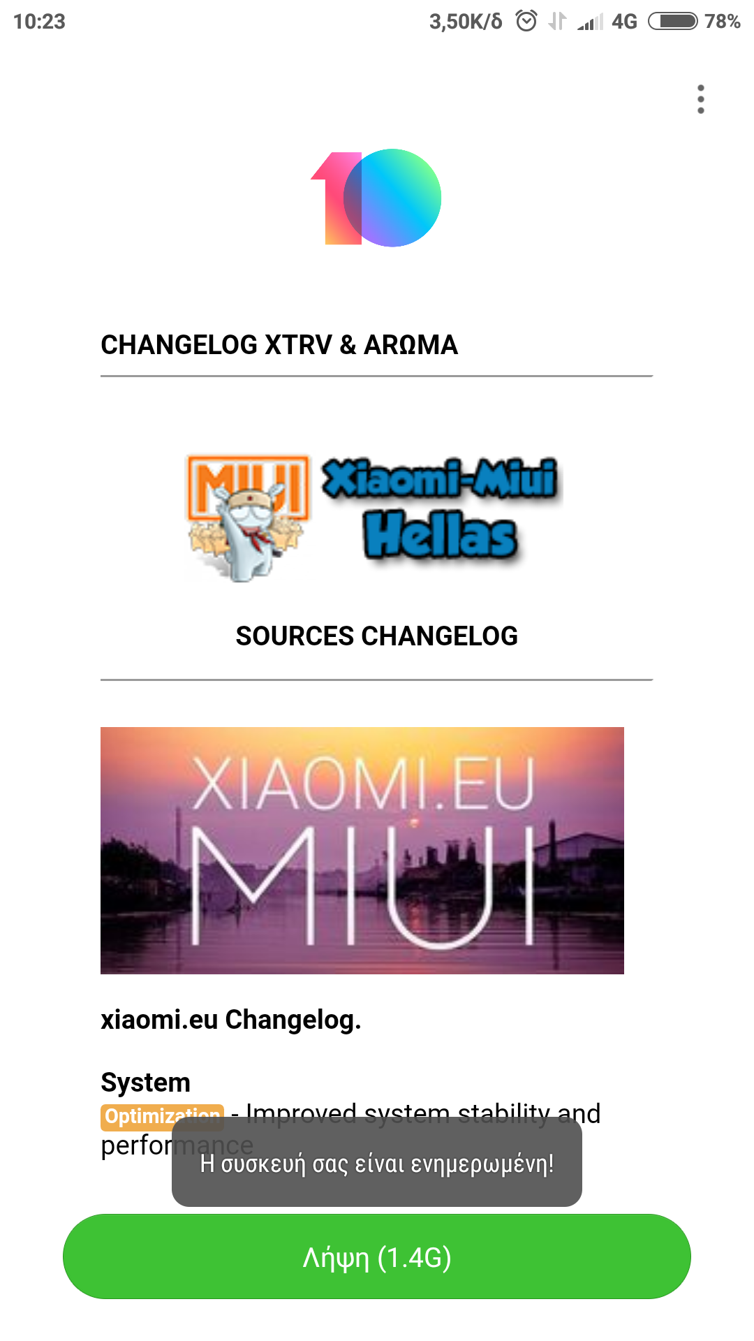 Καλημέρα παιδιά. Αυτές τις μέρες φοράω πάλι την 9.5.1.0 (από vip link) και έχω φλασαρει το patch για τα ota updates. Όταν κάνω έλεγχο για νέα έκδοση δείχνει αρχικά ότι υπάρχει διαθέσιμη ενημέρωση αλλά όταν πατάω για λήψη βγάζει ότι η συσκευή μου είναι ενημερωμένη. Δεν είναι πρόβλημα απλά το αναφέρω αν θέλει κάποιος να το κοιτάξει...